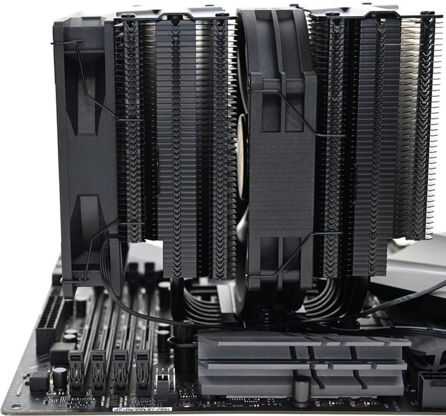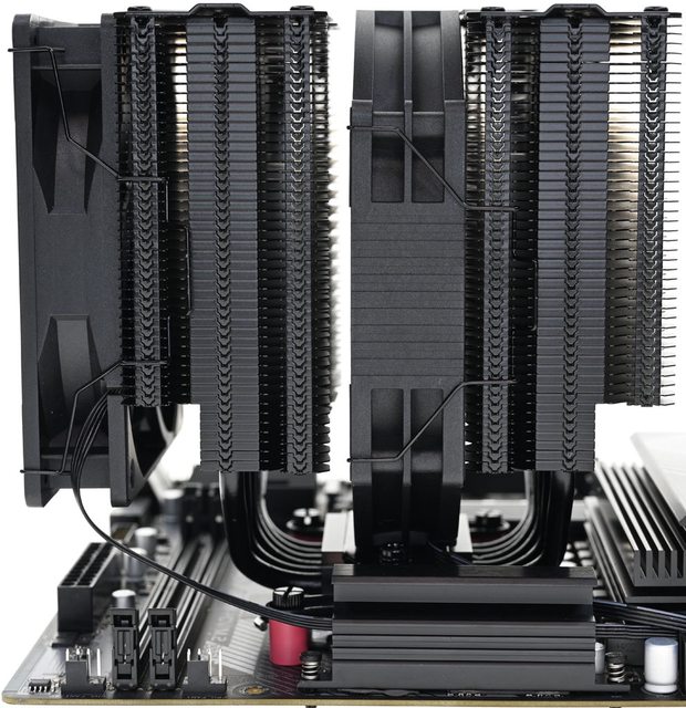 ●配置S-FDB軸承TL-C12B V2風扇及TL-D14CB風扇,安裝於前塔及後塔散熱鰭片之間