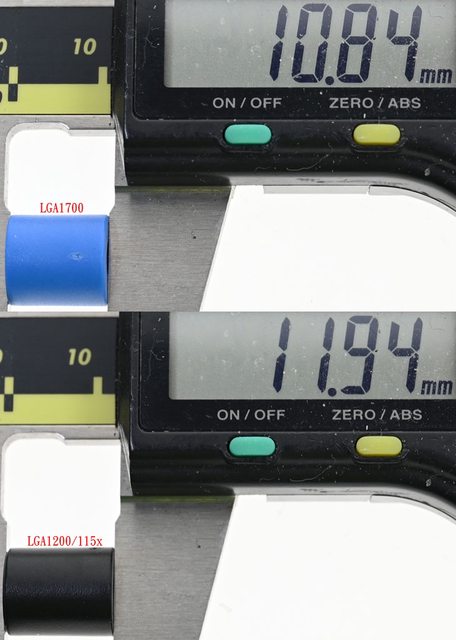 ▼LGA1851/1700藍色套管長度10.8mm(上),LGA1200/115x黑色套管長度11.9mm(下)