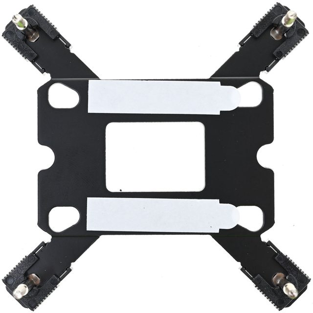 LGA1200/115x黑色套管套上固定螺柱(2),放上Intel托架(3),用4個Intel托架固定手轉