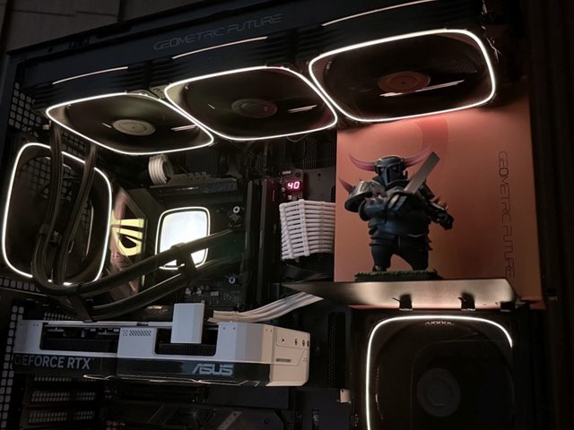 裝機搭配幾何未來自家Model 5 悟空機殼,龍鱗風扇燈效僅框體周圍一圈,個人覺得屬於