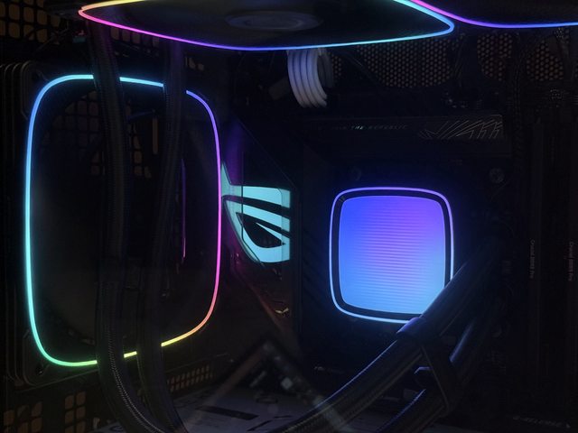 冷頭稱採用高光波紋漸變頂蓋,除中間整圈為ARGB燈帶外,外框邊緣還有一小條燈圈,整