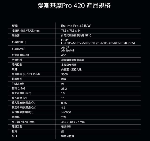 雖然有些廠牌不喜歡被形容為「平價」,但本篇開箱的ESKIMO PRO 42B 水冷散熱器,台