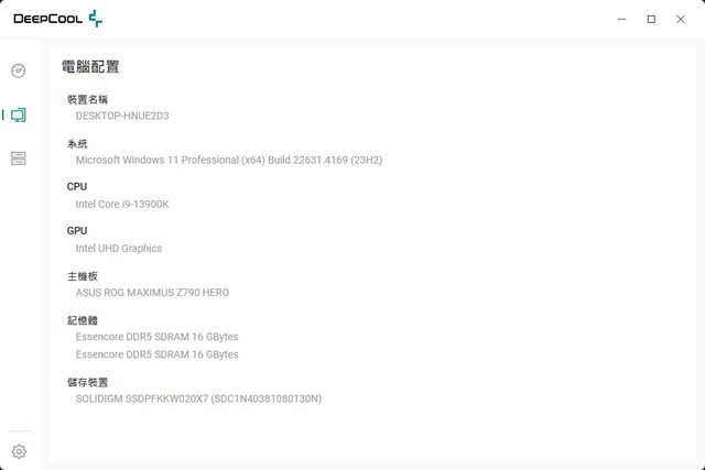 ▼裝置頁面顯示目前偵測到的DEEPCOOL裝置及外觀圖