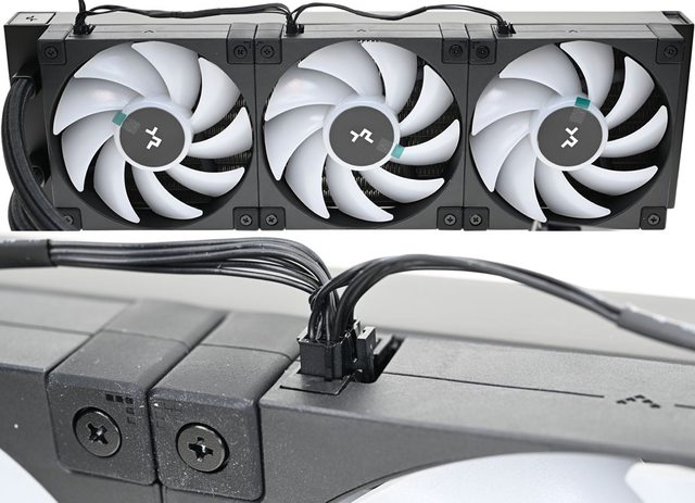 ●厚度27mm鋁製360mm水冷排預裝3個FD12 ARGB發光風扇,採用Hydro軸承,透過PWM轉速