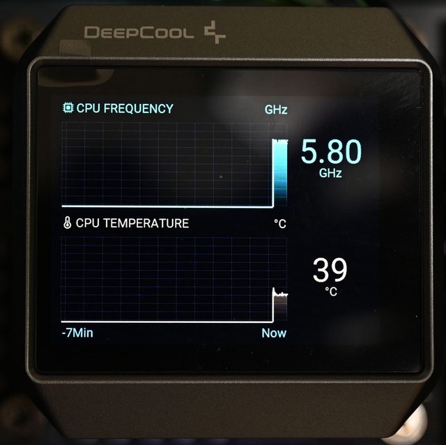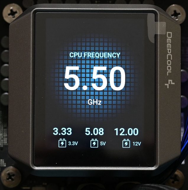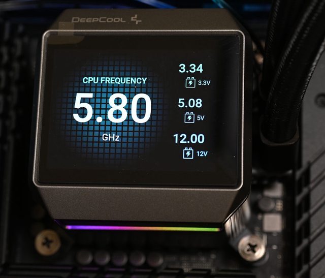 機板燈效或是隨著溫度改變燈光顏色。監控模式可在主顯示區選擇CPU頻率/時脈、水泵轉