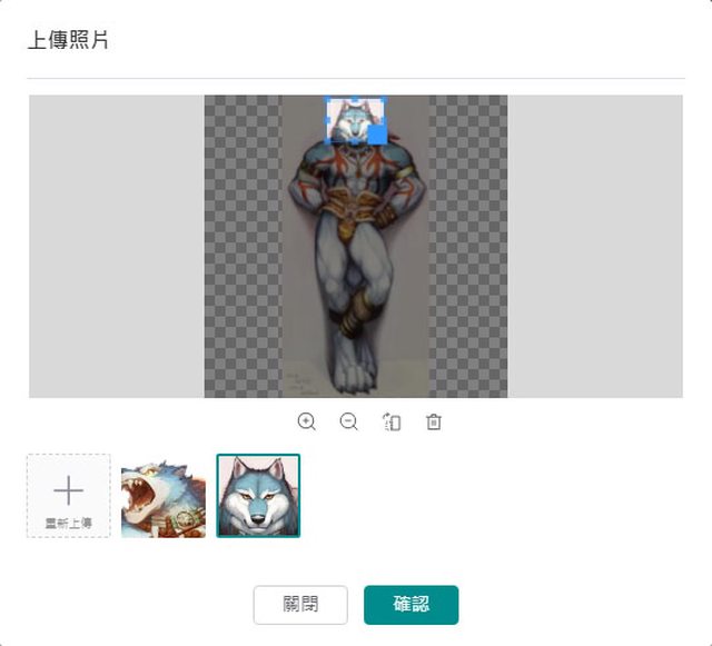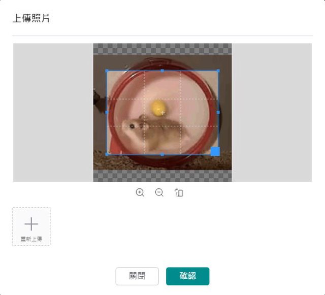 ▼上傳圖片視窗,顯示整張圖片與顯示區域預覽,可用滑鼠操作拖曳/放大/縮小/旋轉,
