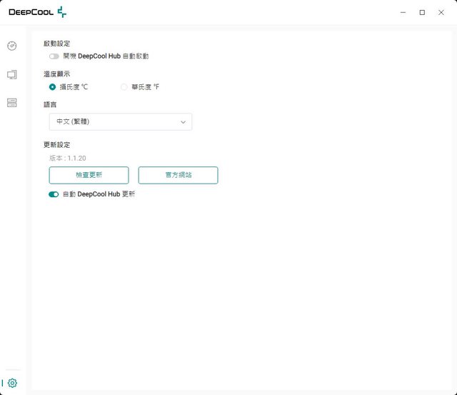 ▼設定頁面,可切換啟動設定(開機自動啟動ON/OFF)、溫度顯示單位(攝氏、華氏)、語言