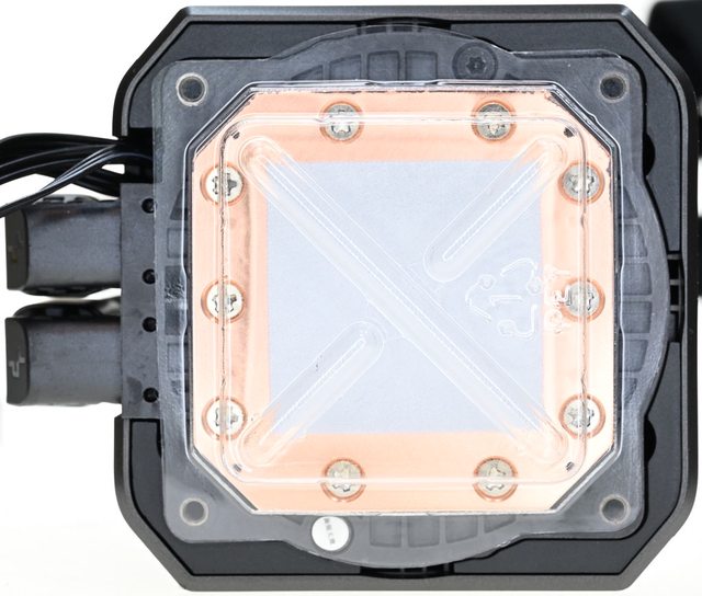 ▼水冷頭兩側方格狀區域的頂部溝槽有ARGB LED