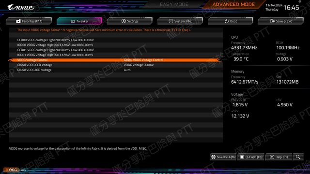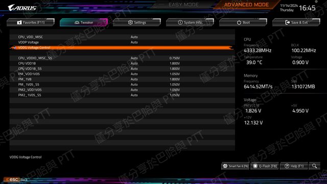 VDDG Voltage Control 預設為 Auto,當 Memory 相關設定完成開機成功後,再進入
