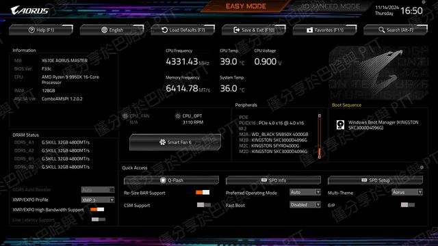 如前述,能否上128GB跟BIOS版本有很大關係,因此升級9950X前擔心128GB開不了機,但