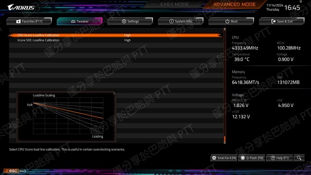 ‧CPU Vcore Loadline Calibration - High