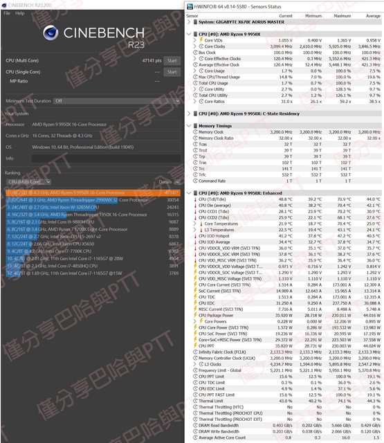 的調整策略,換上9950X後也使用相同方式進行最佳化。結果讓人驚喜,9950X有極佳能耗