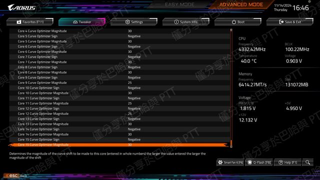 切換至PBO分頁,更改CO值再進行測試,不用重開機進BIOS設定,待確認好每個核心CO值