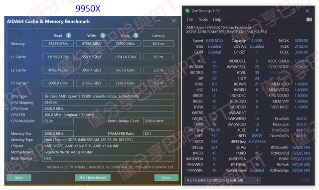 標題[心得] 9950X最佳化能耗比+DDR5-6400/CL32/128GB