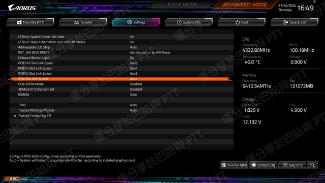 ‧PCIEX16 Slot Link Speed - Gen5 (顯卡)