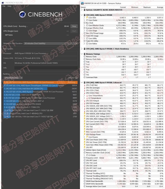 (9)網傳PBO有內部溫度上限70度,按測試結果可發現CPU(Tctl/Tdie)越接近70度,性能提