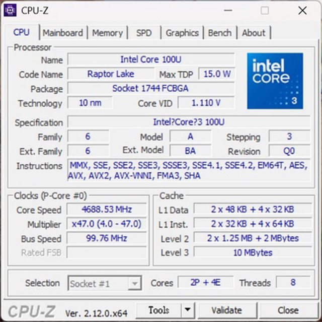 Core i3 100U 支援 D5-4800