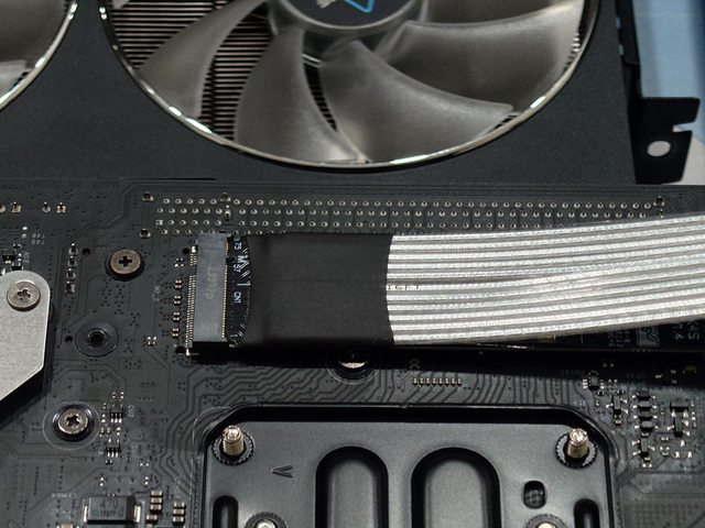 剛好填滿主機板背面的 M.2 Gen3 x4 並透過延長線轉接