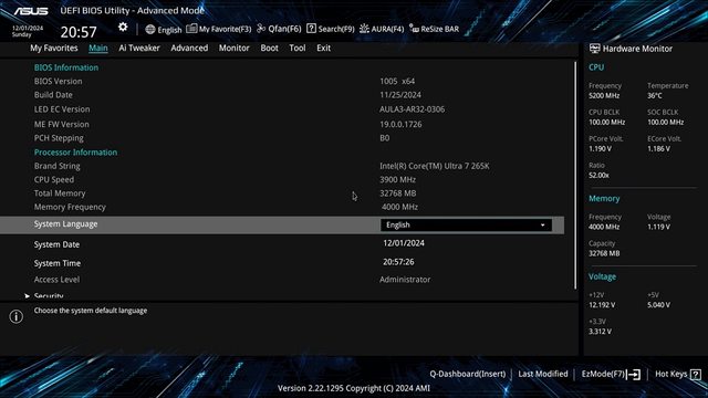 CPU:Intel Core Ultra 7 265K