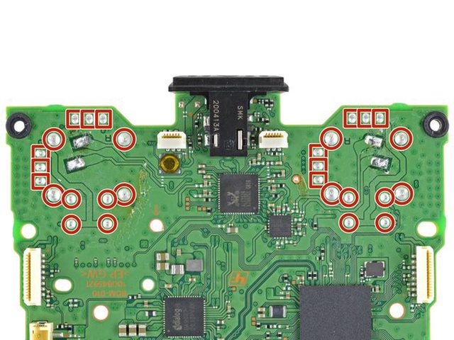 而PS5搖桿的是焊在主板上,一邊有10個PIN加上4個固定位