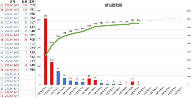 統計數量到12/17(日) 這件事,