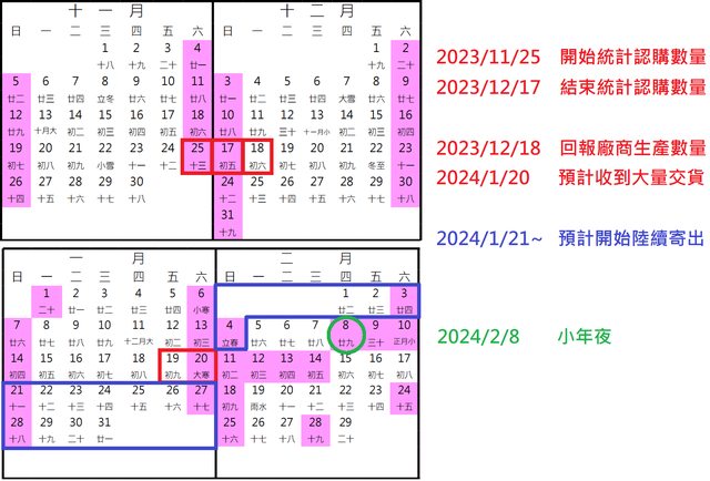 ◆ 數量統計到 2023/12/17 ,預計過農曆年前可收到實物。