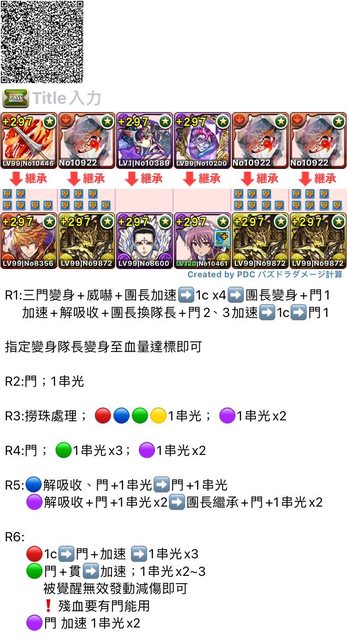 R1.三門+威嚇+團長變身加速→1c x4 →團長變身+門1+解吸收+團長換隊長+門23→1c