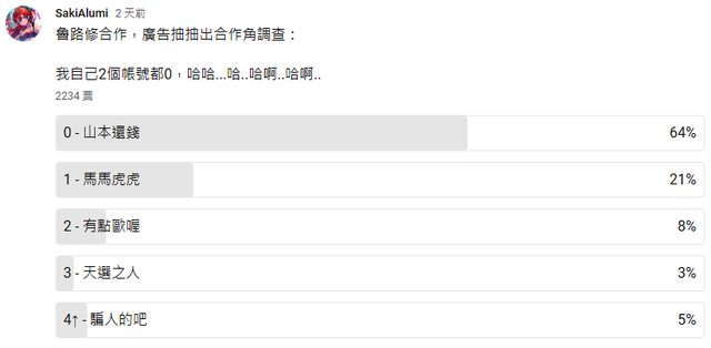 推 a0075203: 五帳號兩主力三個抽抽用,只有兩個抽抽用的各一隻 08/08 17:14