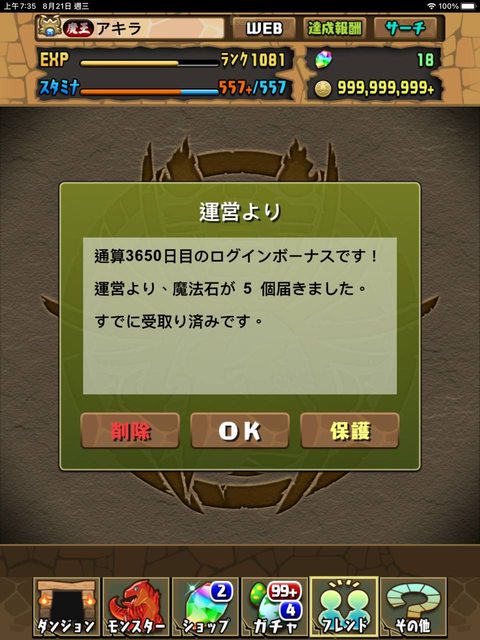 看了一下玩家履歷才發現我是2014年7月開始玩的,總共少了40天沒登入,