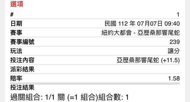 ※ 文章網址: https://www.ptt-website.tw/SportLottery/M.1688735374.A.E5D