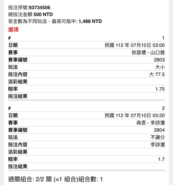 ※ 文章網址: https://www.ptt-website.tw/SportLottery/M.1688908061.A.D70