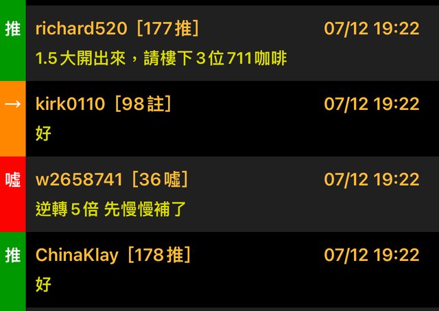 : 推 a245065789: 1.5大 2.45 收20k 111.83.232.139 07/12 19: