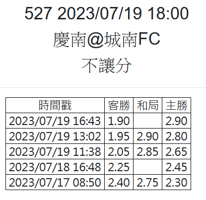 → Carlos002: 慶南上半場逆轉32倍 有勇者嗎? 118.166.99.223 07/19 18:30