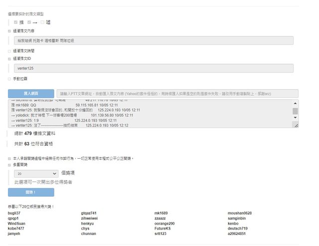 恭喜以下 20位 得獎者