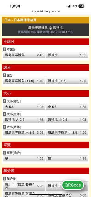 推 huangshiyao: 阪神獨贏一分4.25,羅德單大1.5 1.8 42.75.102.64 10/18 14:33
