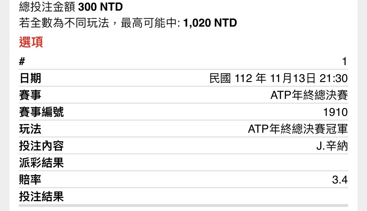 ※ 文章網址: https://www.ptt-website.tw/SportLottery/M.1699872368.A.503