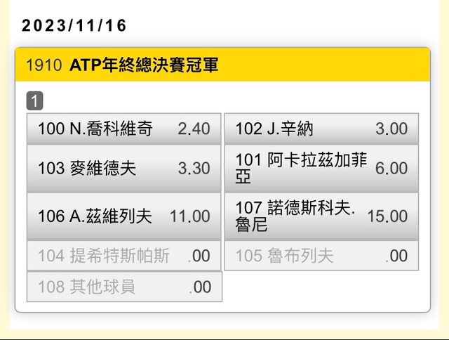 標題[網球]「天九牌」ATP年終賽冠軍