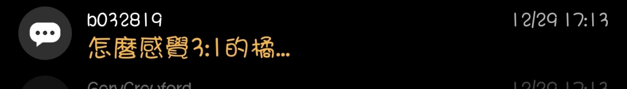 → b032819: 怎麼感覺3:1的橘... 101.9.174.36 12/29 17:13