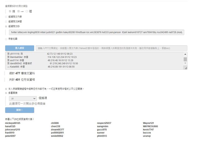 無重複參與抽獎