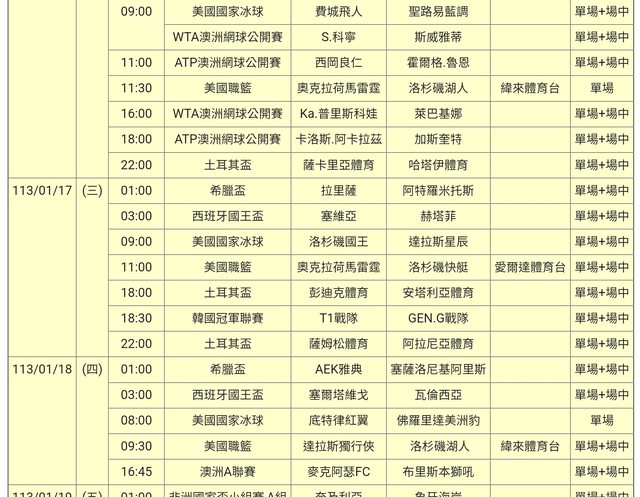 標題 113-01-16 單場場中