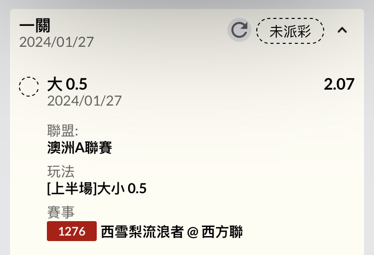 → codoy71: 我上一場角球過關,也還沒派彩@@ 42.77.208.227 01/27 14:59