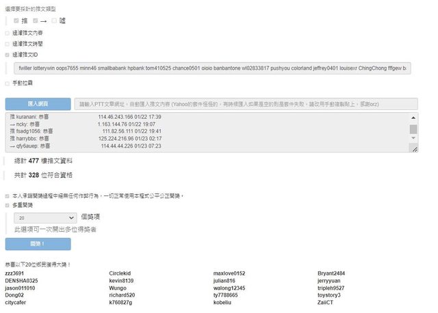 無重複參加抽獎