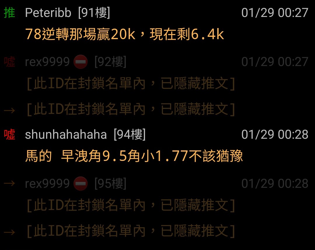 推 Peteribb: 78逆轉那場贏20k,現在剩6.4k 39.14.58.55 01/29 00:27