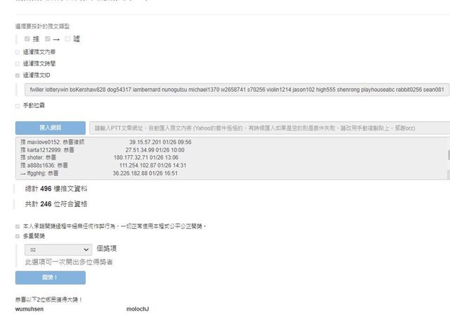無重複帳號參與抽獎