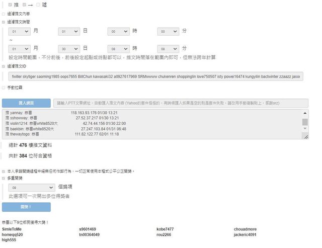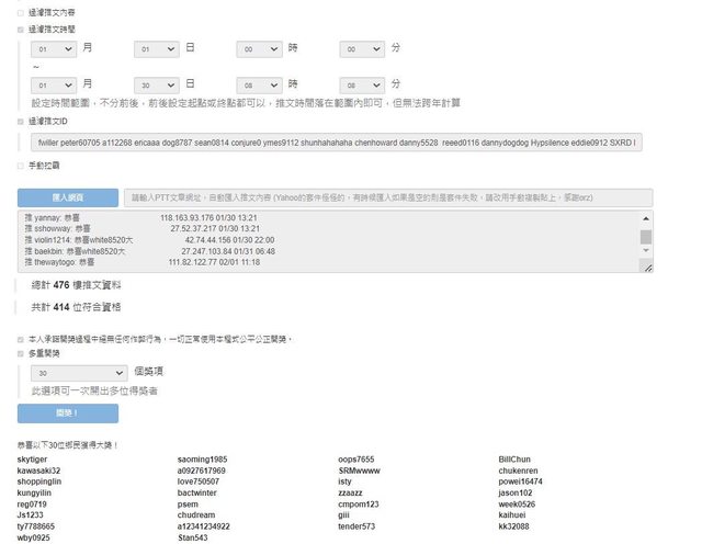 恭喜以上30位得獎者