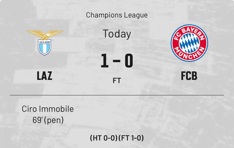 拜仁慕尼黑1:4拉齊歐 168.00