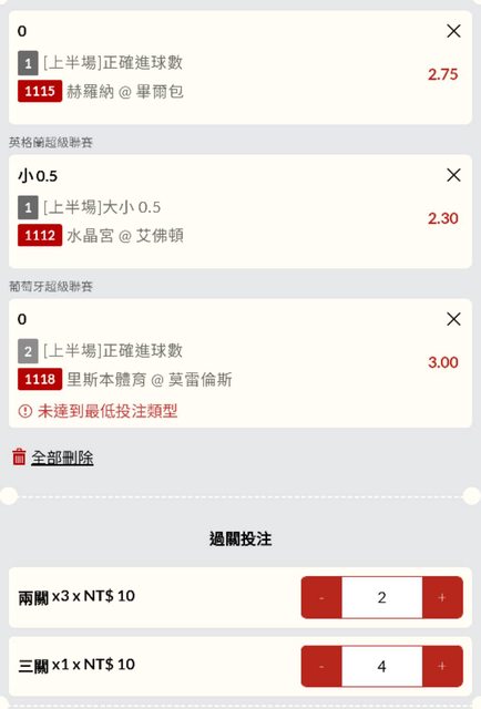 串2關30元 串3關10元...