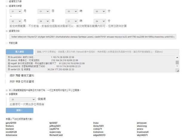 → fg12587: 第一次抽獎 很開心 1.163.82.24 02/20 22:21