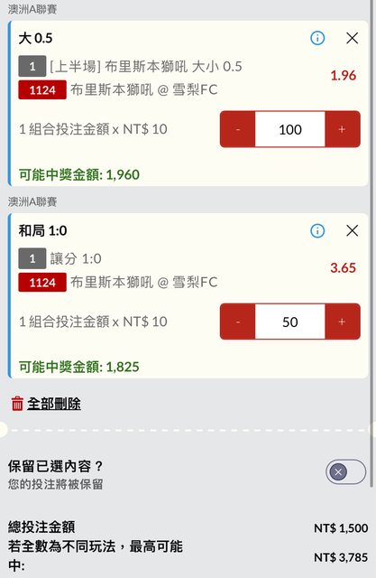 [上半場] 布里斯本獅吼 大 0.5 1.96