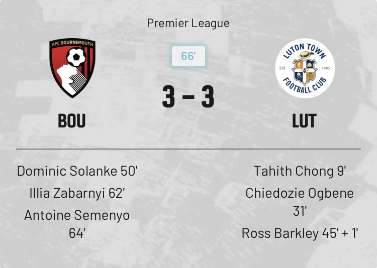 盧頓2:2伯恩茅斯 11.00